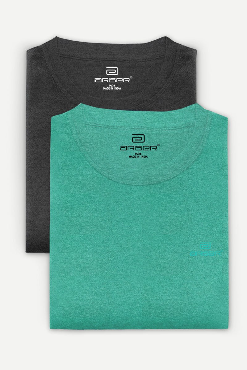 Round Neck - Charcoal and Light Green Solid T-Shirt Pack Of 2 Combo For Men | Ariser