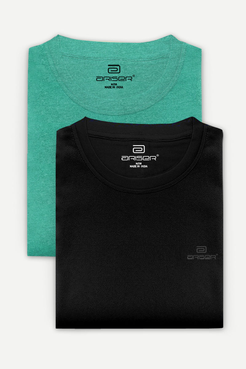 Round Neck - Light Green and Black Solid T-Shirt Pack Of 2 Combo For Men | Ariser