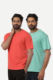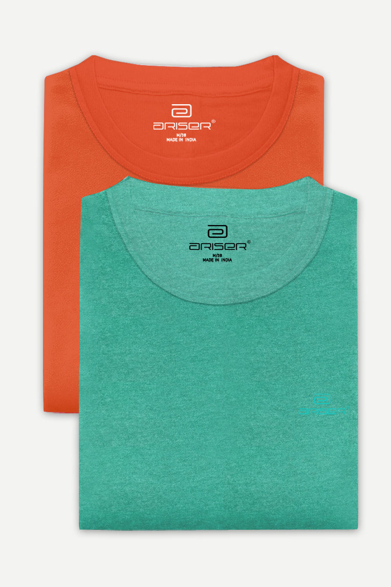 Round Neck - Orange and Light Green Solid T-Shirt Pack Of 2 Combo For Men | Ariser