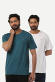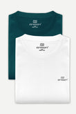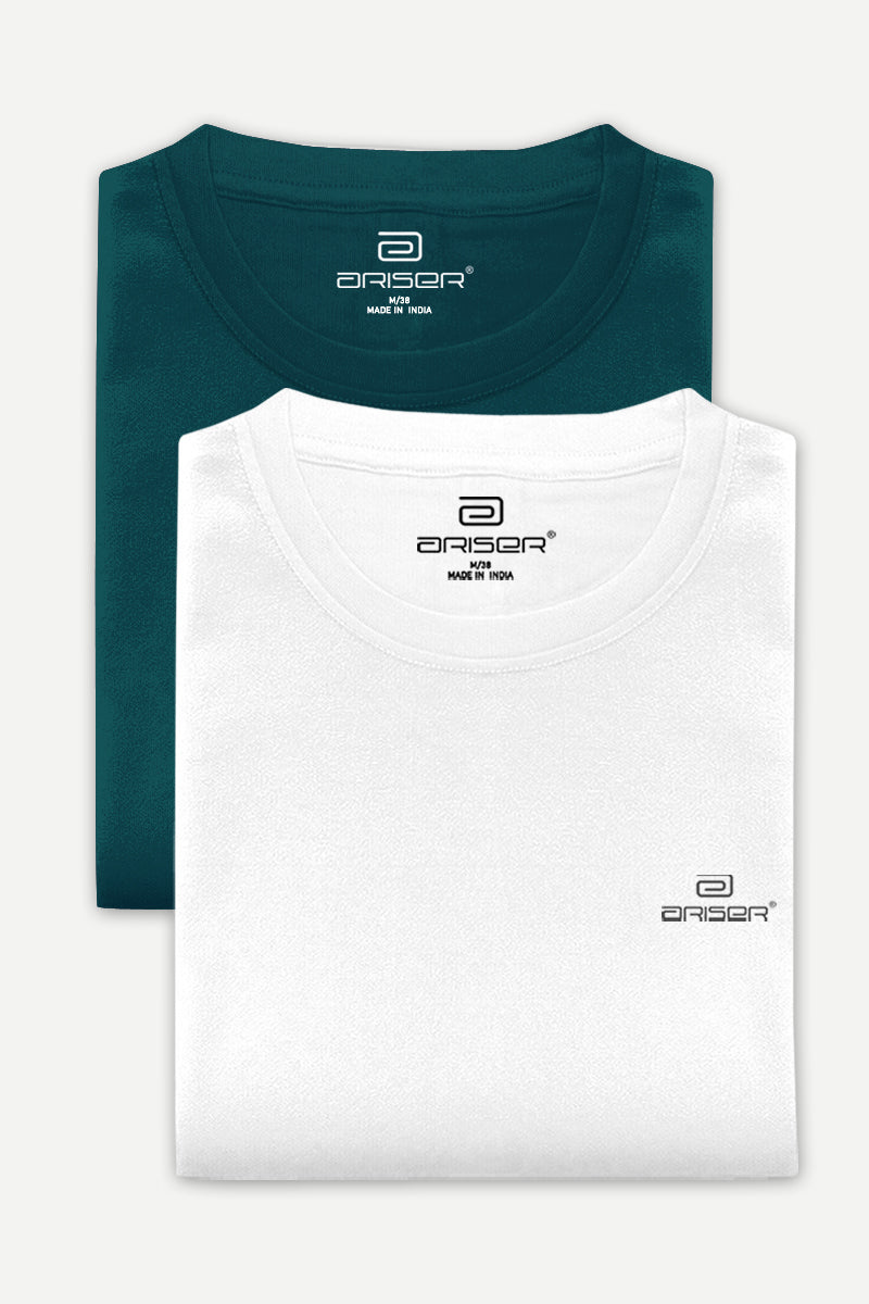 Round Neck - Dark Green and White Solid T-Shirt Pack Of 2 Combo For Men | Ariser