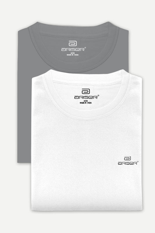 Round Neck - Iron Grey and White T-Shirt Pack Of 2 Combo For Men | Ariser