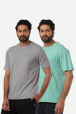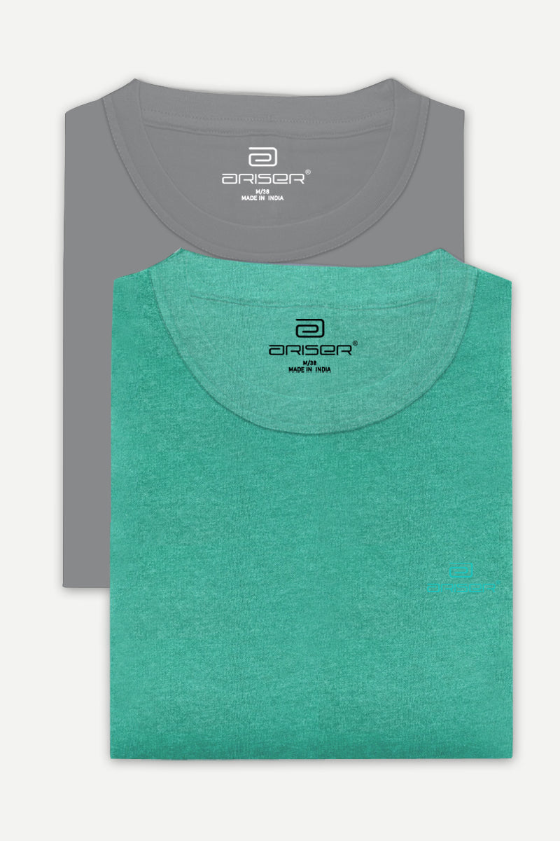Round Neck - Iron Gray and Light Green Solid T-Shirt Pack Of 2 Combo For Men | Ariser
