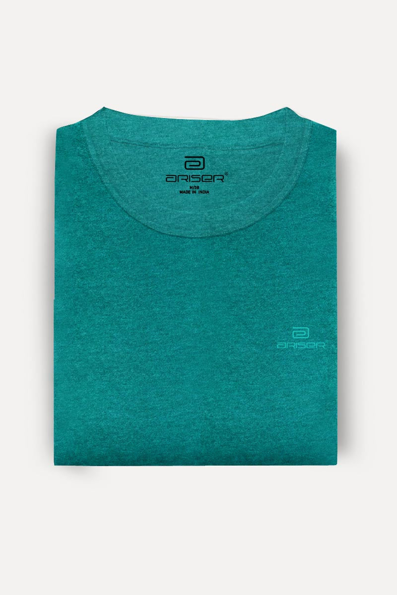 Round Neck - Teal Green Solid T-Shirt For Men | Ariser