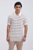 French Polo - Ivory White with Coffee Brown Stripes T-Shirts For Men | Ariser
