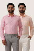 The Ariser Indo Cotton Orange & Pink Pack of 2 Combo Shirts for Men offers a versatile and stylish addition to your wardrobe. These shirts can be worn individually or paired together for a coordinated look, offering flexibility in styling. Whether you're dressing up for a formal event, this combo caters to various occasions.