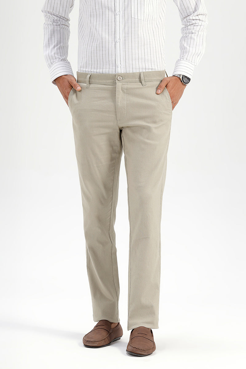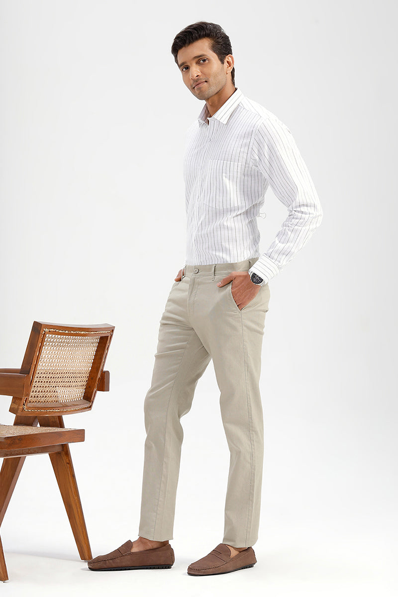Experience comfort and style all day with the Kansas Cotton Slub Trouser. Made from premium broken twill cotton lycra, this lightweight trousers for men offers excellent stretch for unrestricted movement, ensuring you stay comfortable while maintaining a casual, refined look.