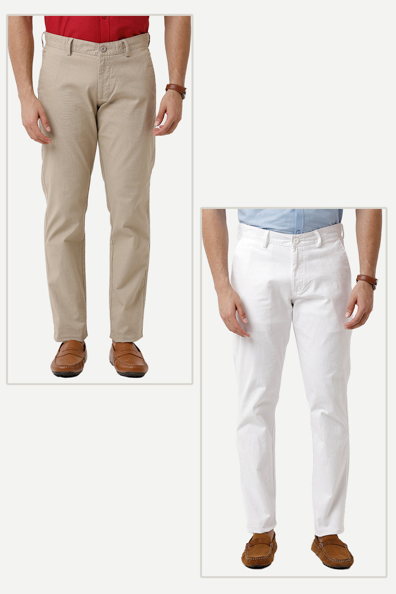 Kansas - White and Sandal Pack of 2 Trousers For Men | Ariser