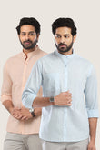 The Ariser Neo 100% Cotton Light Blue & Light Orange Pack of 2 Combo Shirts for Men offers a versatile and stylish addition to your wardrobe. These shirts can be worn individually or paired together for a coordinated look, offering flexibility in styling. Whether you're dressing up for a formal event, this combo caters to various occasions.