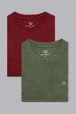 Sport Round Neck - Maroon and Army Green Solid T-Shirts Pack Of 2 Combo For Men | Ariser