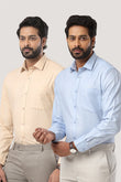 The Ariser Blue & Tan Pack of 2 Combo Shirts for Men offers a versatile and stylish addition to your wardrobe. These shirts can be worn individually or paired together for a coordinated look, offering flexibility in styling. Whether you're dressing up for a formal event, this combo caters to various occasions.