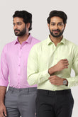 The Ariser Pale Green & Taffy Pink Pack of 2 Combo Shirts for Men offers a versatile and stylish addition to your wardrobe. These shirts can be worn individually or paired together for a coordinated look, offering flexibility in styling. Whether you're dressing up for a formal event, this combo caters to various occasions.